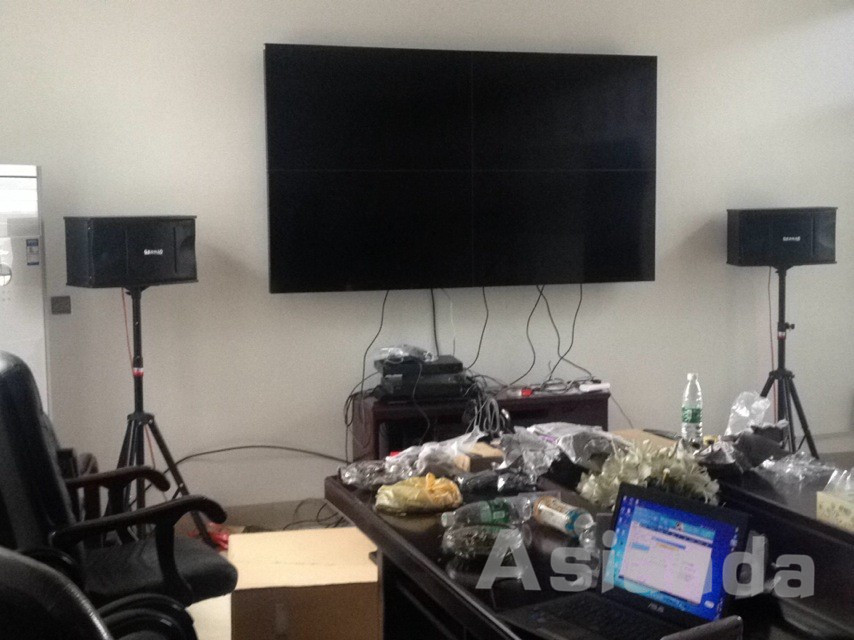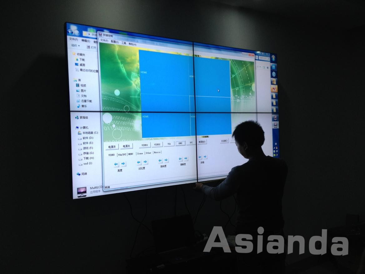46寸超窄边拼接,2*2液晶大屏拼接,支架式安装。