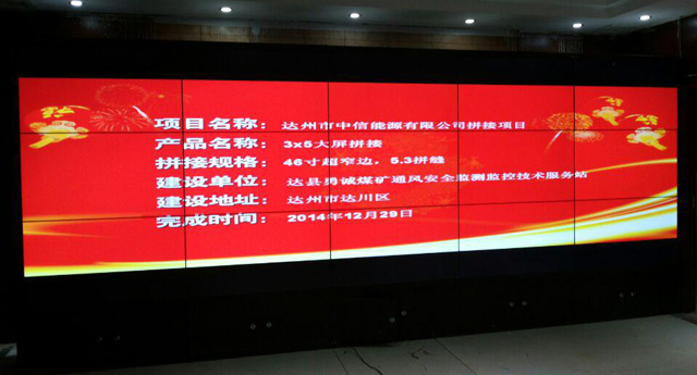 该项目采用的机柜式安装,为了保证监控中心的拼接墙的信号的传输,采用了8进16出的VGA矩阵,且大屏幕控制串口是COM1,矩阵控制串口是COM2。该拼接墙主要用于煤矿通风安全监测监控,整个3x5的拼接墙在前期设计人员根据客户的需求设计效果图,工程人员在安装过程中集合效果图与客户的意见来安装!