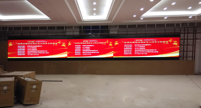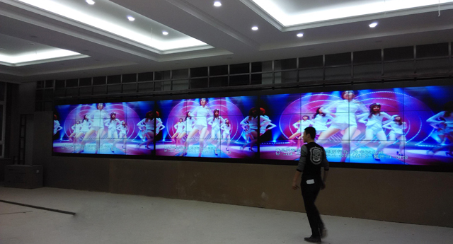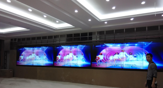 该指挥中的液晶拼接墙是是3*11的46寸拼接单元组合而成,其拼缝为5.3mm。