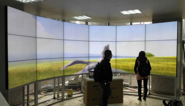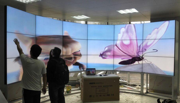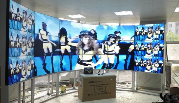 重庆该三甲医院的液晶拼接墙采用弧形铝合金支架组成的3x6的拼接墙,采用弧形拼接一般是考虑到墙体不平时,便于安装。其弧形拼接的拼缝为5.3mm。