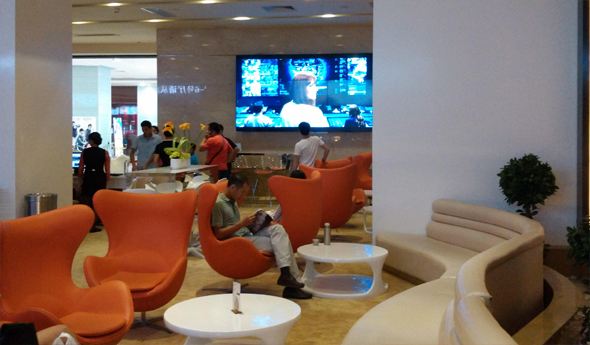 该液晶拼接墙的是采用的46寸的液晶拼接屏,拼缝是5.3mm.该高清拼接墙方案应用在高档电影院VIP室,用于商业广告及公告影片信息等功能。