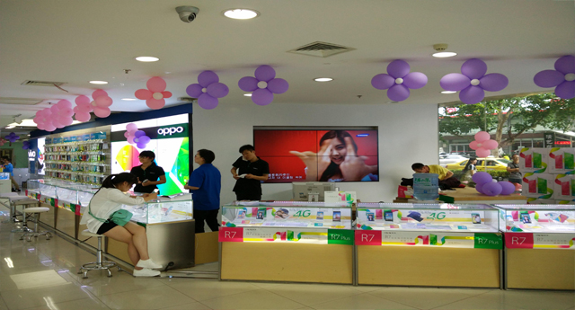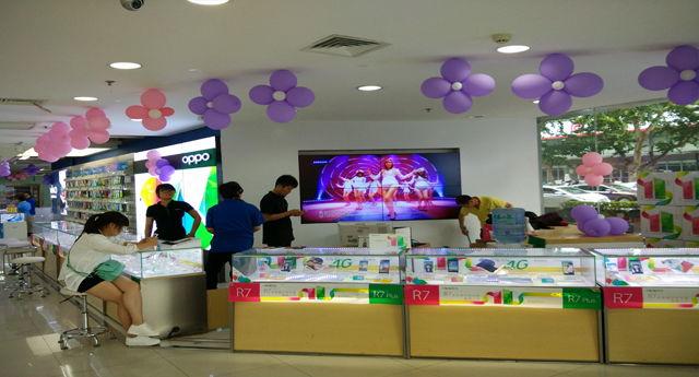 该工程使用的是5.3拼缝46寸低亮2*2的液晶拼接屏,采用木板墙凹槽配挂臂支架安装方式,其它配套设备:一台1进4出VGA分配器,拼接屏使用VGA信号源,用于播放广告信息。雅迅达第四代液晶拼接具备自动调节背光功能,能根据室内光线强弱调整成最适合人眼观看模式,对室内广告来说是时下最流行的应用之一。