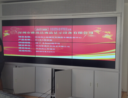 河南商丘柘城县宏发物流公司同样为了此种需求,通过在总部布置雅迅达液晶拼接屏构成的监控系统,对公司物流车辆的车载GPS进行进行监控。宏发物流这次使用的是型号为 PJ-B461P-6F的第四代46寸窄边液晶拼接屏,采用2x3的拼接方式组成拼接墙。产品具有无线操控功能,实现多台电脑控制大屏终端,并有环境亮度智能补偿功能,实现背光亮度自动调节。该型号的液晶拼接屏的特性与功能满足了用户的需求,使公司能够更好的调控运营。
