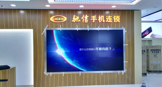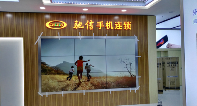 驰信手机连锁店3x3三星46寸3.5超窄边液晶拼接位于南京市,它建成后更好的详细介绍了手机行业的各种品牌的推广,达到了更好的手机推广效果。
