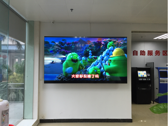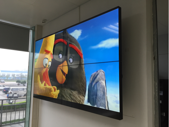 2016年4月24日,在广东江门某公司服务中心安装的2×2液晶拼接屏采用了雅迅达55寸超窄边液晶拼接单元,运用了2×2共4块,搭配了多屏处理器高清显示设备。可以实现多画面同时显示,并且可以实现自由开窗,监视窗的窗口大小可以自由调控、位置可以随时挪动,可以随时切换信号源。是一种非常灵活的显示方案,对于多监控、多功能的公司显示系统,这个使用非常合理。