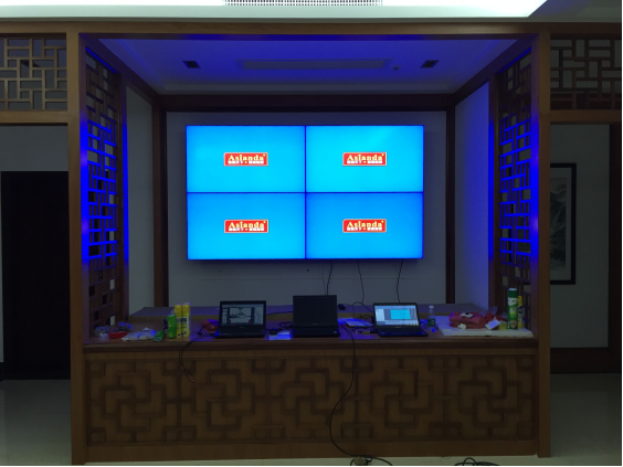 广西某公司的监控室采用了雅迅达2×2拼接的55寸液晶拼接屏,并搭配了多屏处理器高清显示设备。矩阵使用网络控制,大屏也是网络控制,可以实现多画面同时显示,并且可以实现自由开窗,监视窗的窗口大小可以自由调控、位置可以随时挪动,可以随时切换信号源。是一种非常灵活的显示方案,对于多监控、多功能的公司显示系统,这个使用非常合理。