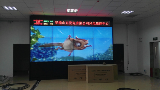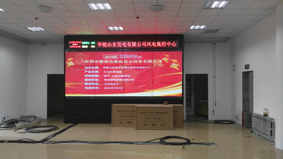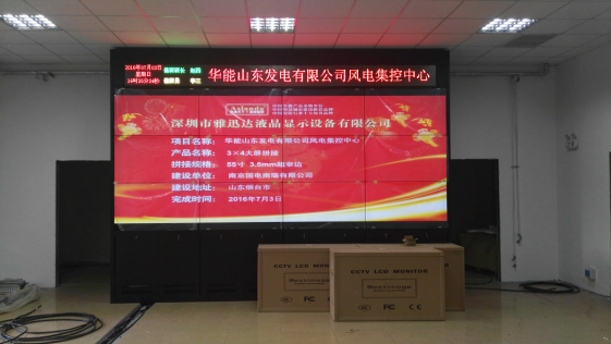 山东某风电集控中心采用了雅迅达3×4拼接的55寸液晶拼接屏,同时使用了雅迅达定制的数字矩阵,并搭配了多屏处理器高清显示设备。矩阵使用网络控制,大屏也是网络控制,可以实现多画面同时显示,并且可以实现自由开窗,监视窗的窗口大小可以自由调控、位置可以随时挪动,可以随时切换信号源。是一种非常灵活的显示方案,对于多监控、多功能的液晶拼接屏显示系统,这个使用非常合理。