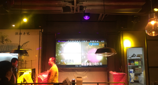 深圳某餐饮公司采用了雅迅达2×2拼接的55寸液晶拼接屏,同时使用了雅迅达定制的数字矩阵,并搭配了多屏处理器高清显示设备。矩阵使用网络控制,大屏也是网络控制,可以实现多画面同时显示,并且可以实现自由开窗,监视窗的窗口大小可以自由调控、位置可以随时挪动,可以随时切换信号源。是一种非常灵活的显示方案,对于多监控、多功能的液晶拼接屏显示系统,这个使用非常合理。