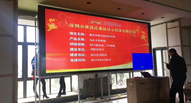 成都某公司采用了雅迅达3×4拼接的55寸液晶拼接屏,同时使用了雅迅达定制的数字矩阵,并搭配了多屏处理器高清显示设备。矩阵使用网络控制,大屏也是网络控制,可以实现多画面同时显示,并且可以实现自由开窗,监视窗的窗口大小可以自由调控、位置可以随时挪动,可以随时切换信号源。是一种非常灵活的显示方案,对于多监控、多功能的液晶拼接屏显示系统,这个使用非常合理。