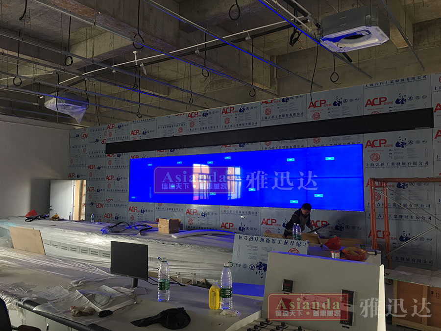 49寸3.5拼缝3x3 拼接屏 该项目位于,上海市崇明区新河镇有机物循环利用中心,采用49寸3.5拼缝3x3