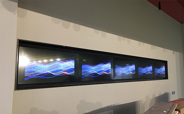 55寸液晶拼接屏工程案例_深圳某智能系统集成有限公司 该工程使用的是1*5的液晶拼接屏,55寸液晶拼接屏 3.5-标亮, 分辨率达到1920*1080。