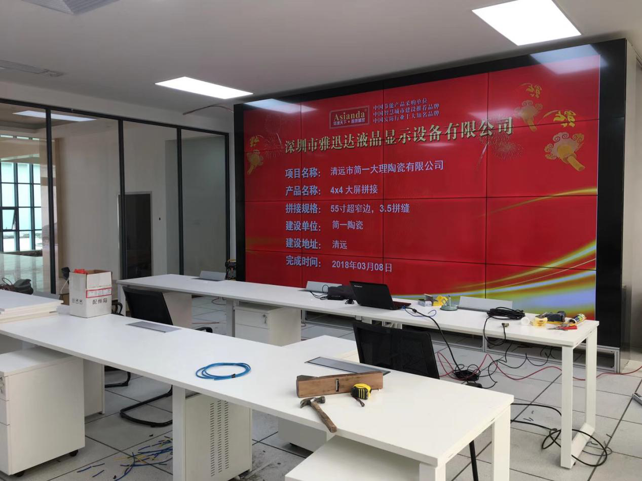 近期清远简一大理陶瓷有限公司采用了雅迅达4×4拼接的55寸液晶拼接屏,同时使用了雅迅达定制的数字矩阵,并搭配了多屏处理器高清显示设备。矩阵使用网络控制,大屏也是网络控制,可以实现多画面同时显示,并且可以实现自由开窗,显示器的窗口大小可以自由调控、位置可以随时挪动,可以随时切换信号源。是一种非常灵活的显示方案,多功能的液晶拼接屏显示系统。