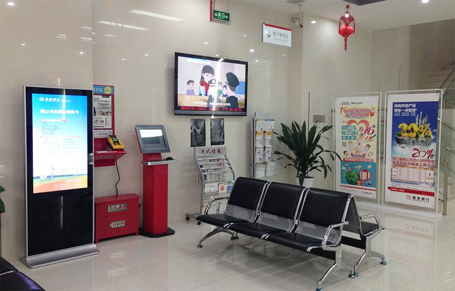 液晶触摸广告机通过广泛的应用已经被广大受众定位前瞻性、拓展性、提高、实用性的化身,液晶广告机给广告商带来的商机无限,就连走在城市大街每个人都会感受到网络广告机带给我们的高清享受。现在任何一个银行的客户都可以轻松地体会到银行广告机所带来的好处。给客户带来好处的同时,信息技术的立异还极大地增强了银行营业厅的服务供应能力。