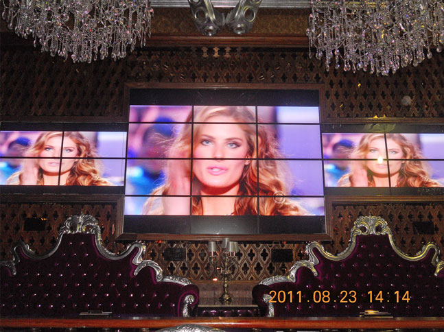 据悉,此次湖南郴州88酒吧大约500平方的大厅都安装了雅讯达的液晶拼接墙系统,共使用了由雅讯达提供的DID拼接单元。据了解,这次打破了传统单屏显示的风格,采用了2*2的拼接,并且均采用HDMI多媒体高清信号与卡拉OK点歌系统对接,让整个画面色彩鲜艳、画质细腻逼真。