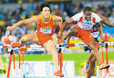 北京时间8月29日20点25分,第13届世界田径锦标赛在韩国大邱进入第三比赛日争夺。万众瞩目的110米栏决赛以一种不太完美的方式结束,在比赛末段,罗伯斯的手臂两次打到了刘翔的手,被带乱节奏的刘翔以13秒27的成绩第三个冲过终点。罗伯斯虽然是首个冲刺的运动员,但组委会认为他扰乱了刘翔比赛,取消了他的成绩。第二个冲过终点的美国选手理查德森获得金牌,刘翔则摘得银牌。 比赛过程中罗伯斯两次打到刘翔的手,尤其是最后时刻严重影响了刘翔的冲刺。到底谁是“鬼”,安防监控系统面前显真假。