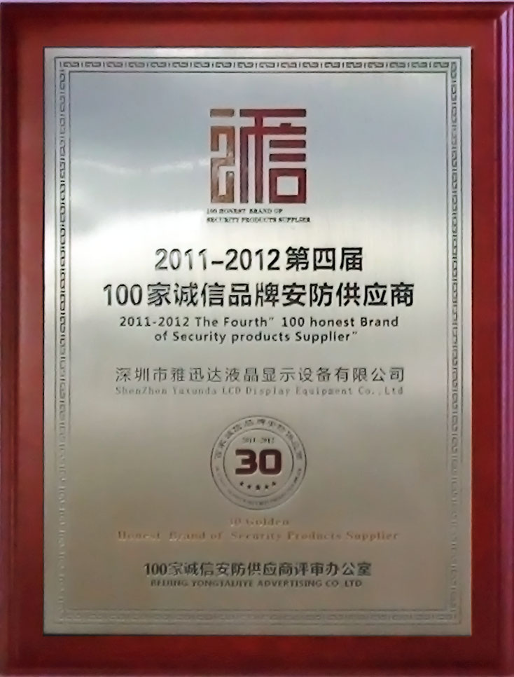 深圳雅迅达荣获“30家金牌诚信安防供应商”称号