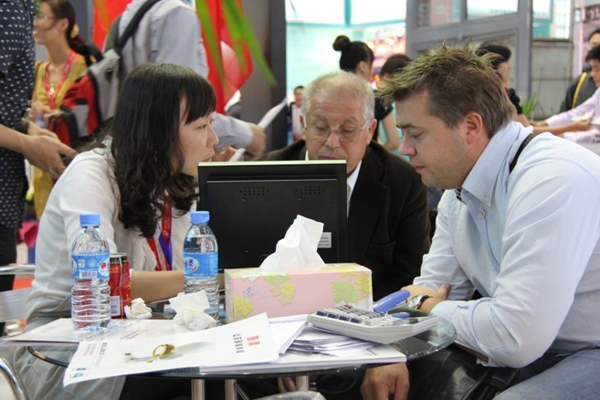 国外客户认真听取我司工作人员讲解小尺寸监视器