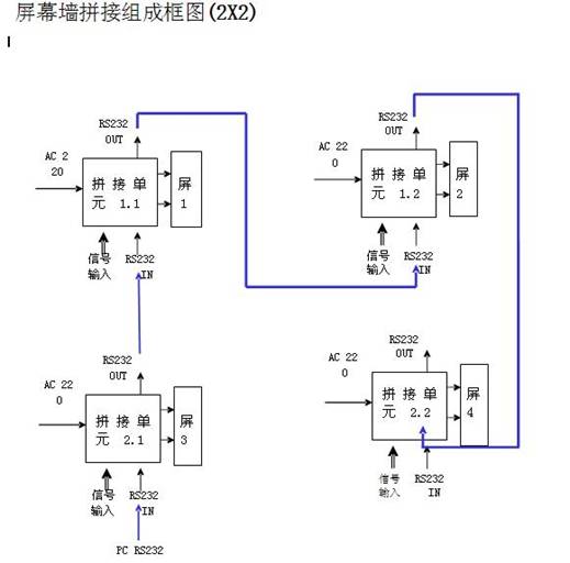 外部YPbPr视频信号源(如DVD)接到“YPbPr视频分配器”的输入端,“YPbPr视频分配器”的输出端分别连接各个拼接器的YPbPr输入端。
