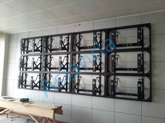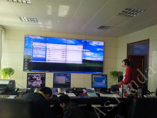 整个网络视频监控系统由前端设备、中国电信全球眼平台、监控调度指挥中心、公司场站客户端组成,能够实时把各个场站的监控视频数据通过网络传送至公司调度中心,作为在安防系统中重要环节之一的后端显示,关系者整个系统功能的最终实现,所以在选择其产品时成为了中燃负责人最头痛的问题,最终经过在众多品牌中的对比中燃选择了我司46寸超窄边拼接屏,搭建了3*4拼接墙,从理论上来说该拼接墙应该不存在技术太多的难题,但是由于中燃监控中心空间的限制无法采用较为简单的机柜型拼接幕墙,最后经过我司结构工程师,产品工程师等人员商讨后选择了前维护型液压支架使空间得到了更好的视觉上的感受。