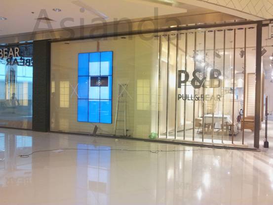 对于此次我司产品能成功入驻pull&bear,毫无疑问的证明我司产品在液晶后端显示领域的广泛运用,本次pull&bear专卖店采用的是我司高可靠性的40“DID液晶屏,整机重量比同类产品约低1.5KG,为目前市场上同类产品最轻级产品,整机功耗上面整体不足200W,非常符合西欧国家提倡的低碳环保理念。近距离观看也不会有明显的热感。独特的10-bit液晶面板驱动,完美的WCG-CCFL亮艳色彩背光源。确保了液晶拼接墙的可靠性,稳定性及观赏性。独家运用的并行高速总线连接,不依赖系统总线,快速切换到命令制定的通道,基于LVD差分传送急速大大的提高了系统的抗干扰能力,使外部对信号的干扰降到了最低。