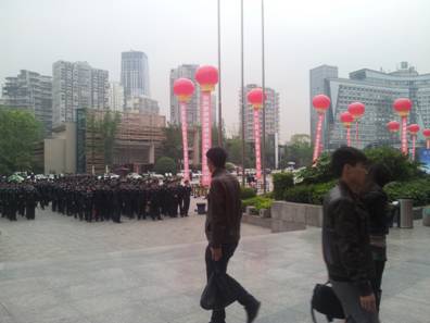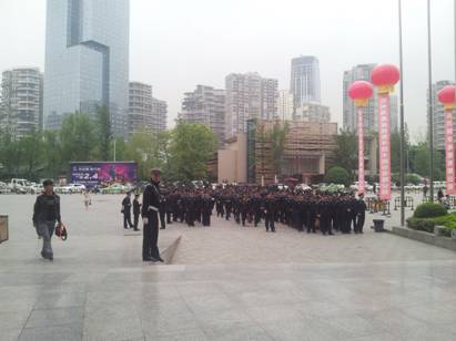 公安人员场外集合准备参展