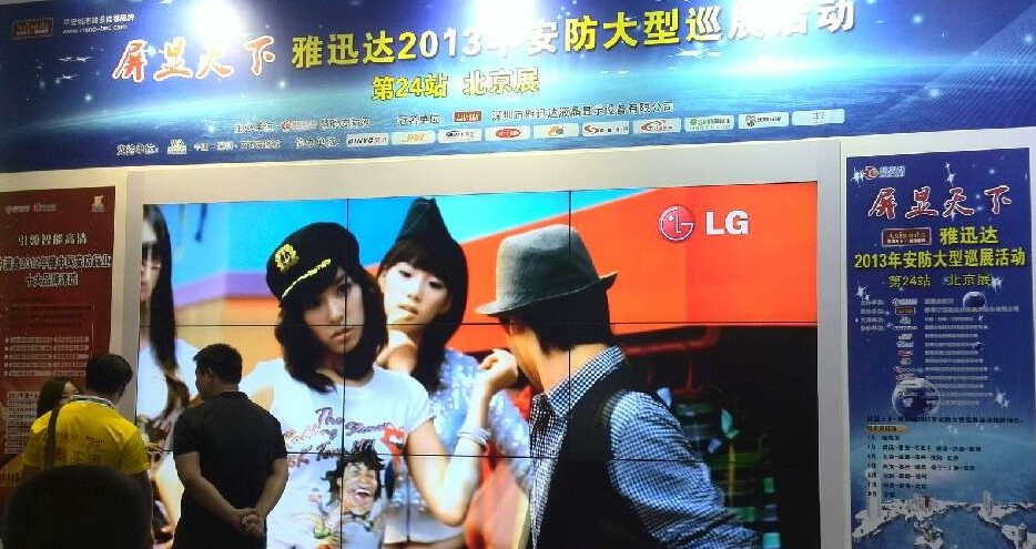 雅迅达2013巡展今天将在中国首部-北京巡展,本次巡展通过2013年第十届中国北京国际社会公共安全产品博览会展现雅迅达产品55寸拼接屏。