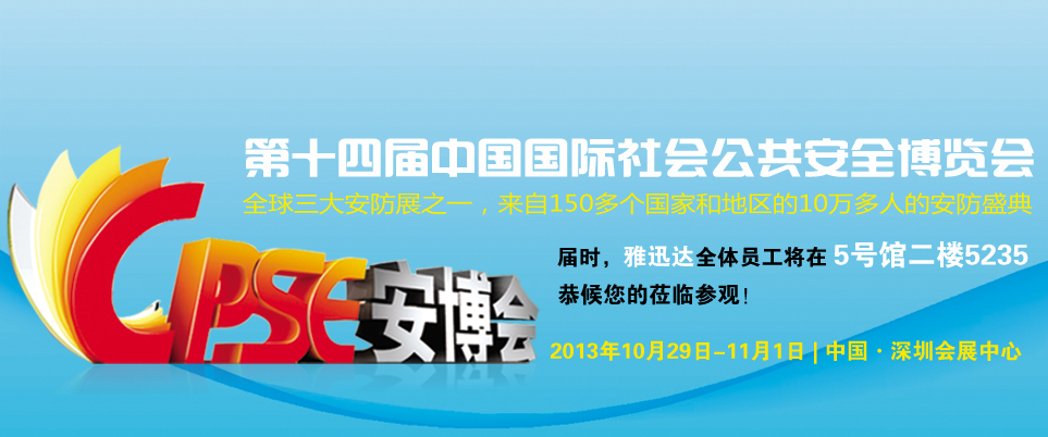2013深圳第十四届中国国际社会公共安全产品博览会将于2013年10月29日至2013年11月1日在深圳会展中心隆重举办!本次展会雅迅达将隆重发布两项液晶显示设备领域创造性节能技术,此技术攻克了业内难以解决的多项难题。
