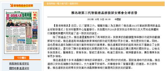 《香港商报》报道我公司智能液晶拼接屏