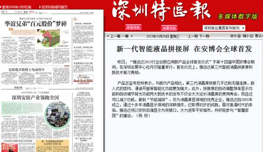 《深圳特区报》报道我公司智能液晶拼接屏
