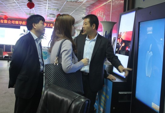 在参观我公司产品过程中,胡副秘书长对我公司数字标牌分屏显示、实现多画面播放的功能赞不绝口。公司大堂超大监视器也得到了众领导的青睐。奖杯证书林立的荣誉墙格外吸引客人注意,黄总无不自豪地向领导讲解了我公司历年获得的多项技术发明专利。领导还尤其关注安博会上我公司新发布的两项新技术——自动刷新频率和自动调节背光亮度技术,认可了我公司在技术层面孜孜以求的专业态度。