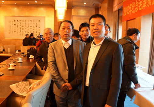 中国毛泽东书法研究会副会长赵凯(左)与雅迅达营销总监黄春龙(右)合影