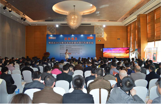 在石家庄最繁华的CBD商业中心,氤氲在省博物馆、省图书馆、国际博览中心的科技文化氛围中,具有石家庄最高楼之称的希尔顿酒店耸立其中。3月20日的希尔顿酒店贵客盈门,由深圳市雅迅达液晶显示设备有限公司独家冠名,慧聪安防网主办,深圳市佳信捷技术股份有限公司、深圳市优特普科技有限公司、深圳市国祥安科技发展有限公司协办,名品世家(北京)有限公司赞助的“屏聚视界——雅迅达2014数字安防联盟中国行”首站在这里完美收官。来自河北省的系统集成商、工程商朋友十分给力,活动由原定的300人飙升到接近500人。