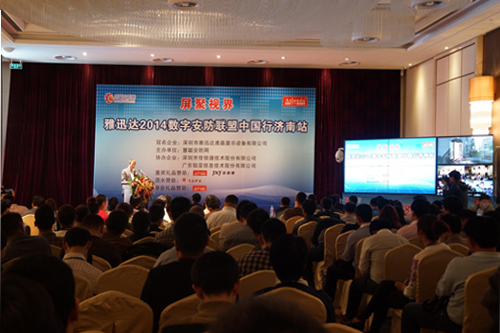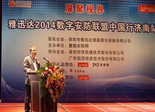 27日下午14:30,雅迅达数字安防联盟中国行济南站活动正式启动。中国传媒大学杨磊教授首先对活动进行了致辞,杨教授说道:“数字安防联盟活动正是顺应需求而生,我相信本活动在2014年势必成为备受瞩目的活动,必将为联合全国各地企业同仁起到重要的作用,同样,我也相信资源整合将是我们2014年的主题,分享共同的资源,让大家发挥各自最擅长的力量,将是我们成功的第一步。在未来,这种活动形式,势必也将成为行业内最新的一种合作模式,将成功改变我们今天的市场格局,为在座各位赢得更多的市场空间,让我们共同期待。”