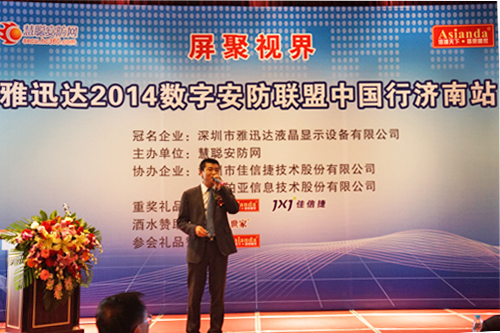 山东安防市场是安防厂商的必争之地。被誉为“世界泉水之都”的省会城市济南,也是山东安防的代表城市一。3月27日,由深圳市雅迅达液晶显示设备有限公司独家冠名,慧聪安防网主办,深圳市佳信捷技术股份有限公司、广东铂亚信息技术股份有限公司协办,名品世家(北京)有限公司赞助的“屏聚视界——雅迅达2014数字安防联盟中国行”济南站活动在济南泉盈大酒店三楼会议厅隆重举行。
