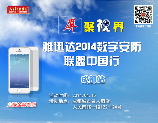 今日,雅迅达2014数字安防联盟中国行成都站活动在成都城市名人酒店名人厅盛大上演。本次活动由深圳市雅迅达液晶显示设备有限公司独家冠名,慧聪安防网承办,深圳市佳信捷技术股份有限公司、广东铂亚信息技术股份有限公司、珠海市太川电子企业有限公司联合协办。