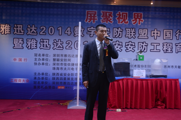 这场由深圳市雅迅达液晶显示设备有限公司独家冠名,慧聪安防网主办,深圳市佳信捷技术股份有限公司、广东铂亚信息技术股份有限公司、珠海市太川电子企业有限公司、深圳市国祥安科技发展有限公司、惠州市天敏科技发展有限公司联合协办的“屏聚视界——雅迅达2014数字安防联盟中国行”,以及由深圳市雅迅达液晶显示设备有限公司独家冠名,北京四星展览服务有限公司协办的“2014西安安防工程商大会”昨日在西安高速神州酒店隆重举行。