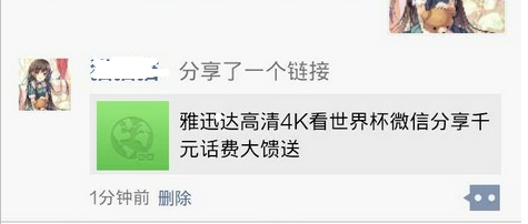 2. 分享“雅迅达高清4K看世界杯微信分享千元话费大馈送”活动信息到朋友圈,并将分享信息截图发送,再编辑姓名+联系电话回复至雅迅达订阅号。