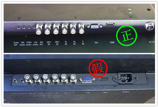 (图2)假冒品接口与雅迅达正品监视器接口对比