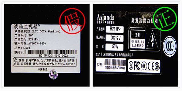 近日,我公司相继接到多位客户咨询如何识别购买到的雅迅达液晶监视器的真伪,由此可以看出,经过3.15让安防产品的维权已经在安防行业引起重视!早在去年,在我公司的一批售后返厂维修机中,就发现数台假冒“雅迅达(Asianda)”品牌的液晶监视器,我公司特别发布了一篇如何辨别雅迅达出产的液晶监视器的真伪的新闻。在当今,市场上的山寨产品层出不穷,安防行业从2013年开始,市场已经是“百舸争流”的局面,众多从事过安防行业的业务员或者看好安防行业的从业者纷纷进入安防行业,各种贴牌生产的安防产品流向市场,从而导致价格混乱,产品以次充好,从而达到混淆消费者的视听,导致越来越多的消费者购买到伪冒产品!