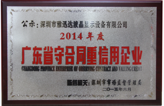 雅迅达年度内合同履约率100%,且无严重违法违规经营行为记录,除了对待客户本着真诚、守信、专业的服务理念外,在产品质量上也用实际行动践行着对用户的品质承诺。无论是以高清液晶监视器为代表的经典产品,还是55寸第四代智能液晶拼接大屏、行业定制液晶广告机、触控查询机、电子白板等新产品,雅迅达坚若磐石的品质均奠定了一个重信用企业的诚信基础。