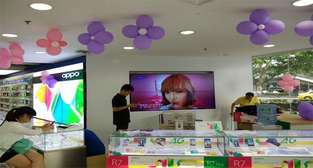 在一些例如电影院、服饰销售、手机销售门店、大型商场等场所,有的商家为了广告店铺优惠活动、展示产品宣传片等功能,特意制作了这么一个广告系统。门店广告系统根据门店大小而定,小型店铺有单独使用拼接屏,也有单独使用大尺寸的广告机。中型以上的超市、商铺会采用“液晶拼接墙+广告机”方案,以液晶拼接屏为主,以广告机为辅的方式基本上可以覆盖整个店面。播放内容统一控制亦可单独播放,无线安装,非常方便。据了解,不少店铺还能以广告位的形式进行招租,互利共赢,是一项双赢的应用。