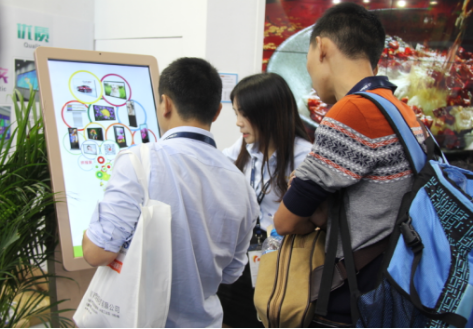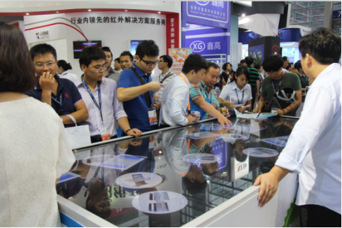 在触控类定制化自助服务终端机方面,可用于多种场合广告投放,以及实现更多线上线下互动功能的32寸触摸定制款一体机(O2O设备)表现不俗,众多客户对O2O设备表现出浓厚的兴趣。为未来视频会议做应用创新的16点多点触摸拼接屏(电子沙盘)更是全场唯一,以其全新的触控体验及应用领域,吸引了现场众多人亲自尝试。