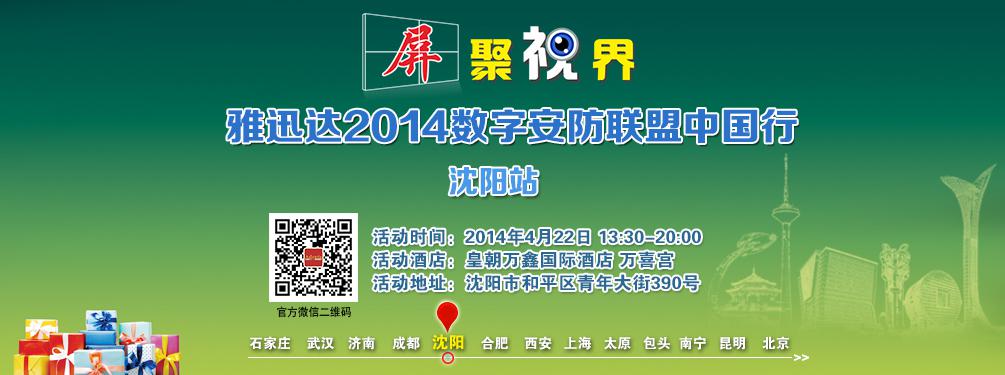 共行安防路 雅迅达2014中国行沈阳站明日开幕   继本月15日雅迅达数字安防联盟中国行在成都完美收官之后,雅迅达继续挺进,将于4月22日(明日)沈阳皇朝万鑫国际酒店开启沈阳站活动。