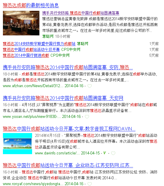 雅迅达中国行成都站抢滩各大网媒b体育官网 4月15日,以“屏聚视界”为主题的“雅迅达2014数字安防联盟中国行”成都站在成都城市名人酒店名人厅如期举行。截止今日,各大媒体对活动本身及由活动引发的安防融合发展道路的探讨...