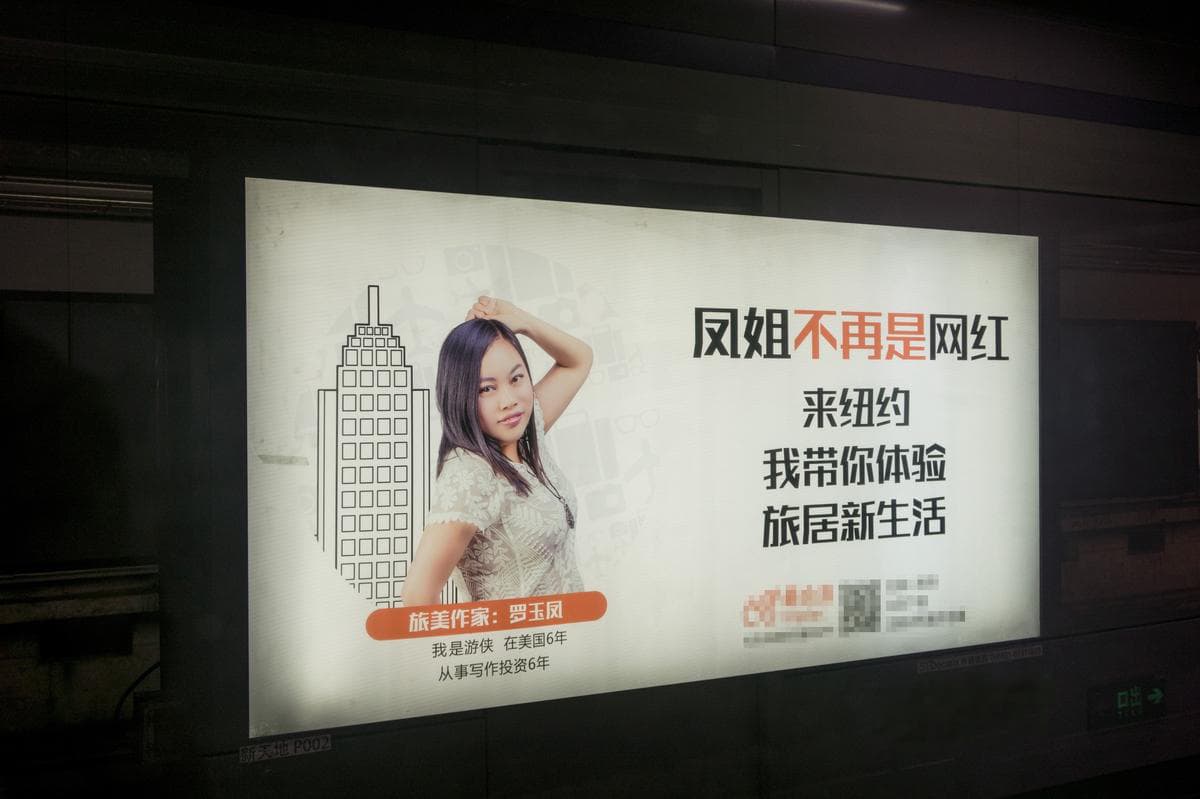 凤姐变身旅美作家 地铁广告屏全方位展示 一则跟凤姐有关的广告大幅出现在地铁站内,而广告内的内容颇为吸睛,因为她的身份已经不再是网红。同时展示凤姐旅美形象的广告大屏也引起了广大关注。