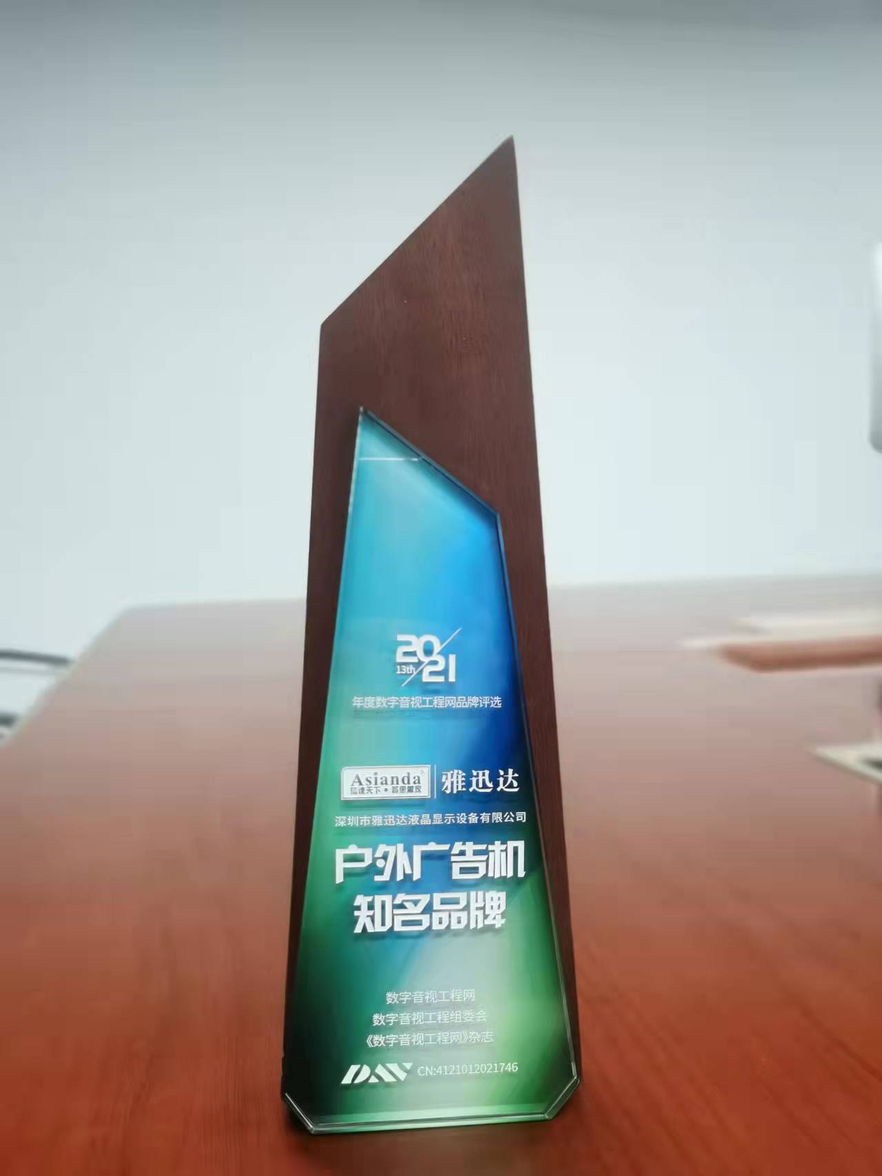 喜报|雅迅达荣获2021年度户外广告机知名品牌 近日,深圳市雅迅达液晶显示设备有限公司获数字音视工程网评选为“2021年度户外广告机知名品牌”。