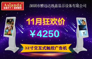 雅迅达年底巅峰让利 32寸交互式触控广告机低价来袭 触控需求的迅猛兴起,我们已进入触控时代,不论是手机还是电视电脑,用手指操控成为人们的习惯。广告机的发展也是如此,经过了几代的发展,触控广告机已经成为了广告机中的重要一...
