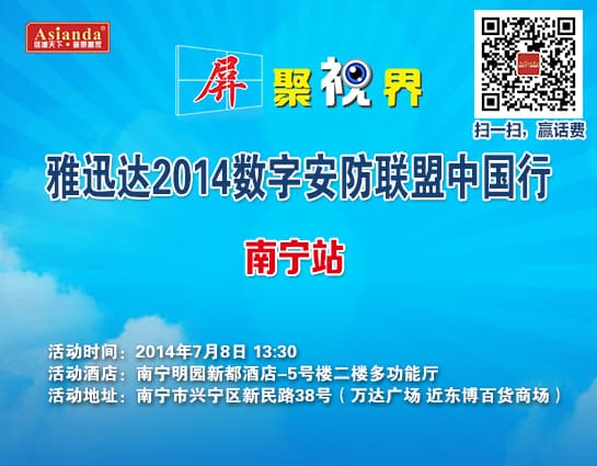 聚首南宁 雅迅达中国行7月下西南 光阴荏苒,恍惚间2014已然过半,“屏聚视界——雅迅达2014数字安防联盟中国行”也随时光的指针行至成熟富饶的盛夏。7月,雅迅达再起航,组织带领监控系统领先企业佳信捷、优秀球机供...