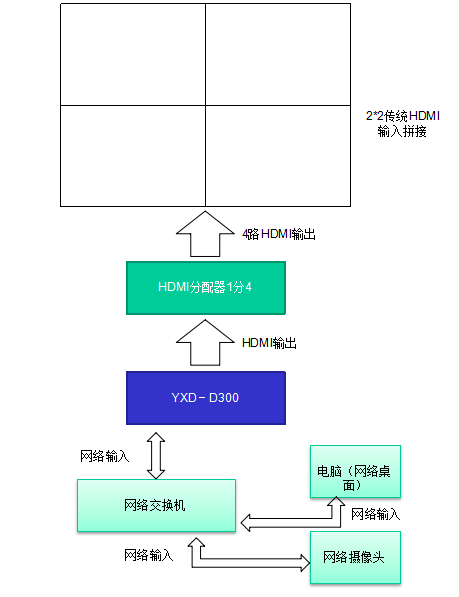 YXD-D300是网络拼接家族中的一员,是我公司耗时几年的最新研发产品,其强大的解码能力,信号处理能力和强大的图像运算能力上都是首屈一指的。应用领域广泛,小区、公司、等小规格监控,娱乐行业的信号传(不用HDMI等远传了)。特点在于小而精,采用ONVIF协议,单台1080P的解码能力达到了9路,720P达到18路,D1达到36路,以上说的都是主码流,要是解成CIF的子码流那可多的去了。经授权,同时还可以接入网络桌面,包括手机、平板、网络桌面,利用现有网络就可以实现不需要HDMI、DVI、VGA和DP等线材就可以将桌面实时显示在电视墙上。支持16画面分割显示,如果是一个4*4的拼接,那么就可以每一个显示一个独立的画面,同时也可以将任一画面双击全屏拼接显示。