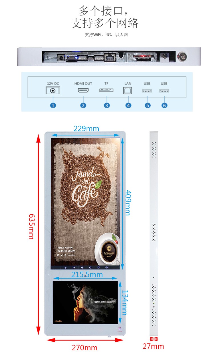 HDMI 1.4标准显示接口,最高支持1080P输出